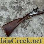 This rifle is a 54 caliber “Jim Bridger” Style Hawken Rifle with fancy curly maple stock. It features a 1″ straight octagon Green Mountain Barrel 36″ in length, L&R flintlock, and Double Set Triggers. It features iron mounts with the addition of a pineapple cap box and toe plate. It measures 52″ in overall length […]