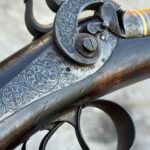 Here we have a beautifully crafted 19th Century double barrel muzzleloading sporting shotgun that was made in Mainz Germany. It features full tapered damascus barrels with 20 gauge bores, gold inlay, and hand engraved breeching. Engraved percussion locks signed GEBR LINDENSCHMIT IN MAINZ. The locks feature half cock locks and function crisp and clean as […]