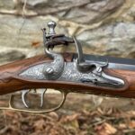 This rifle is a 54 caliber “Jim Bridger” Style Hawken Rifle with fancy curly maple stock. It features a 1″ straight octagon Green Mountain Barrel 36″ in length, L&R flintlock, and Double Set Triggers. It features iron mounts with the addition of a pineapple cap box and toe plate. It measures 52″ in overall length […]