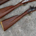 Here we have a beautiful .75 caliber, custom built German Jaeger by Ron Scott. There was no detail left out on this build as you can see by the photos, it is a fully decorated example that features deep relief brass mounts, hand chiseled relief and incised carvings on the European Walnut stock, and hand […]