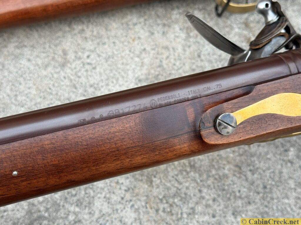 Carbine length musket with a 31″ barrel, 75 caliber smoothbore.